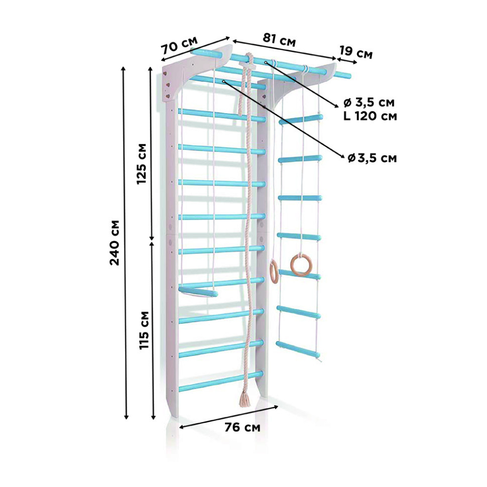 | Додаткова комплектація | Турнік, Мотузкові сходи, Драбина, Трапеція, Кільця гімнастичні, Канат |